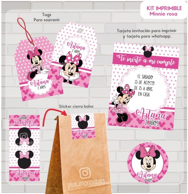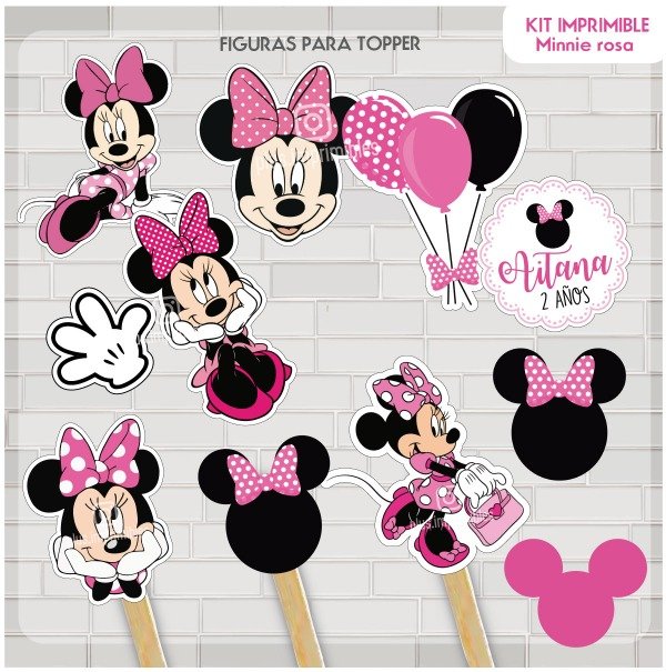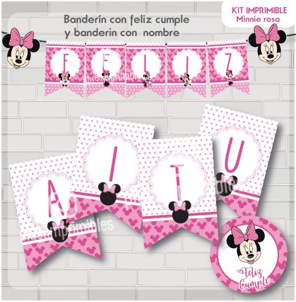 KIT IMPRIMIBLE PARA CANDY BAR MINNIE ROSA