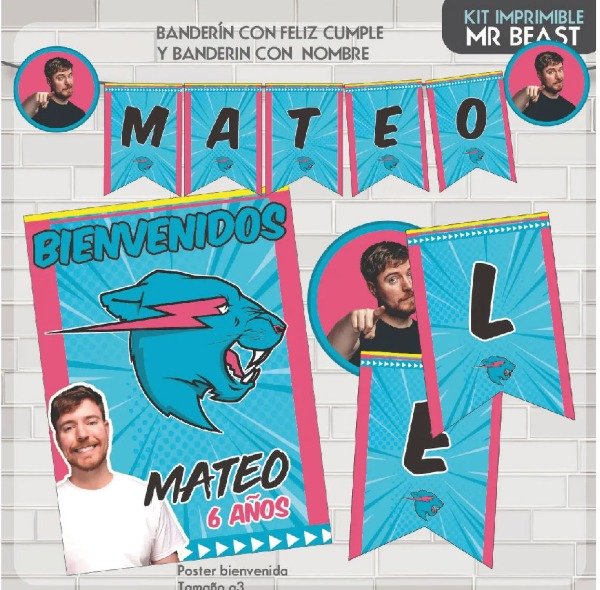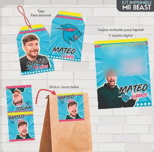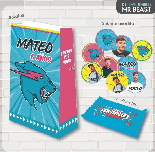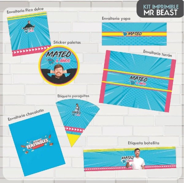 KIT IMPRIMIBLE PARA CANDY Mr Beast - Youtuber OPCIÓN 1