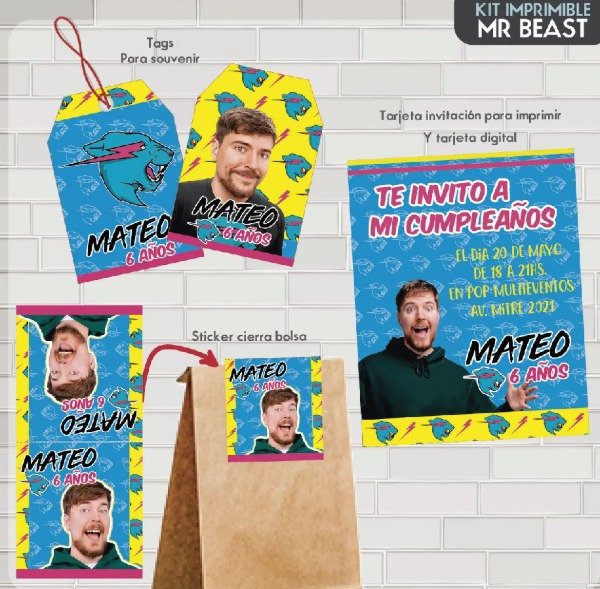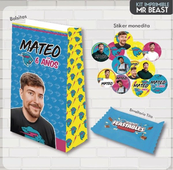 KIT IMPRIMIBLE PARA CANDY Mr Beast - Youtuber OPCIÓN 2