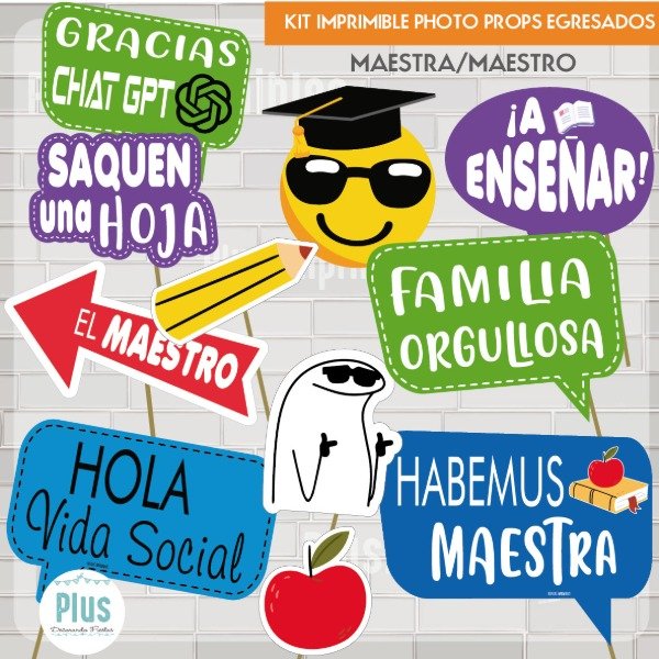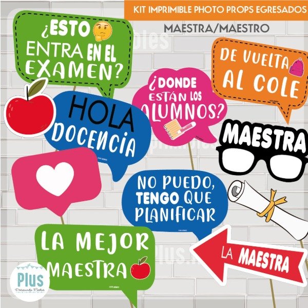 KIT IMPRIMIBLE PHOTO PROPS GRADUADO/A MAESTRA / MAESTRO FONDOS DE COLORES.