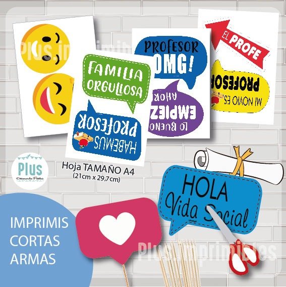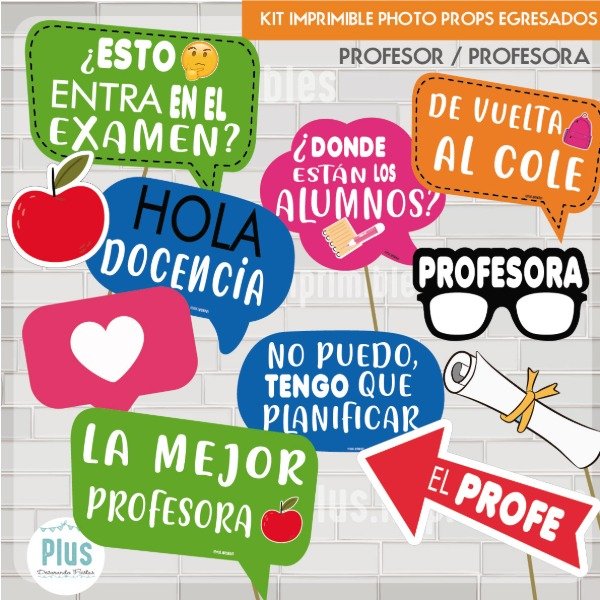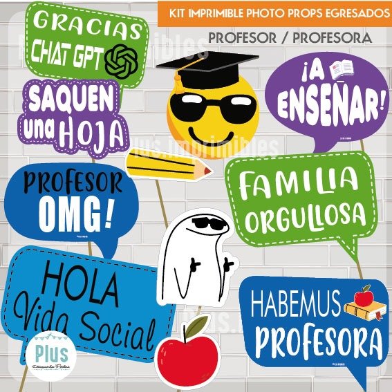 KIT IMPRIMIBLE PHOTO PROPS GRADUADO/A PROFESOR / PROFESORA FONDOS DE COLORES.