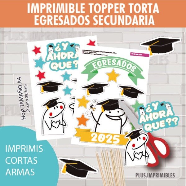 KIT IMPRMIBLE TOPPER DECO TORTAS + BANDERIN EGRESADOS 2025.
